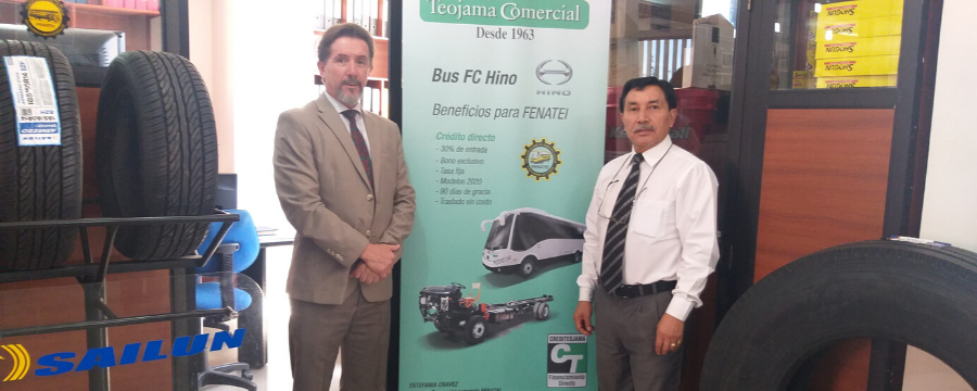 Teojama Comercial se suma a la renovación del parque automotor escolar en Ecuador. Mediante la firma de un convenio comercial con la Federación Ecuatoriana de Transporte Escolar e Institucional (FENATEI), sus integrantes podrán acceder a 200 unidades en este año, con beneficios exclusivos. Entre las facilidades se encuentran: porcentaje de entrada preferencial, bono adicional (dependiente de la unidad), 90 días de gracia, traslado sin costo y tasa de interés fija con CrediTeojama. El acuerdo contribuye al cumplimiento del plan de renovación del parque automotriz escolar que promueve la Fenatei, el cual está enfocado a contar con vehículos escolares e institucionales de la mejor calidad y garantías.