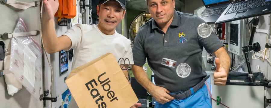 Uber Eats se asoció con el empresario japonés y fan del delivery, Yusaku Maezawa, quien entregará personalmente comida típica japonesa a los astronautas en la Estación Espacial Internacional, como parte de su órbita de 12 días. Esta entrega se realizó el 11 de diciembre a las 9:40 am, habiendo recorrido 248 millas y 8 horas y 34 minutos desde la salida de Maezawa de la Tierra.