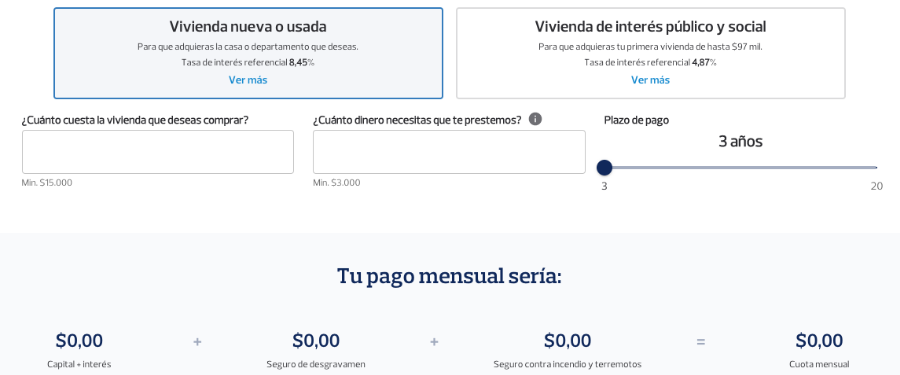 2 – Luego, ingresar el valor de la vivienda que desea comprar.