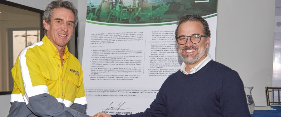En el marco de la Transición Ecológica liderada por esta cartera de Estado, Gustavo Manrique, ministro del Ambiente, Agua y Transición Ecológica (MAATE), suscribió junto a la empresa cementera UNACEM Ecuador S.A. un acuerdo voluntario para el fortalecimiento de la producción y consumo sostenible, con el cual se compromete la empresa a mantener y potenciar sus acciones para mitigar el cambio climático, a través de buenas prácticas industriales.
