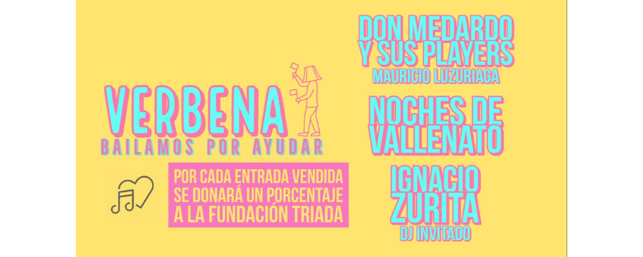 “Bailemos por ayudar” es el objetivo que persigue el concierto de Verbena, que se realizará el jueves 13 de febrero, a las 19h00 en Kabbalah (ubicada en la Iñaquito y Villalengua). Esta iniciativa, que presentará en escena a agrupaciones nacionales como Don Medardo y sus Players, Mauricio Luzuriaga y Noches de Vallenato, buscará recolectar fondos para la Fundación Triada, quienes dan atenciòn y tratamiento a personas que cuentan con discapacidad neurológica.