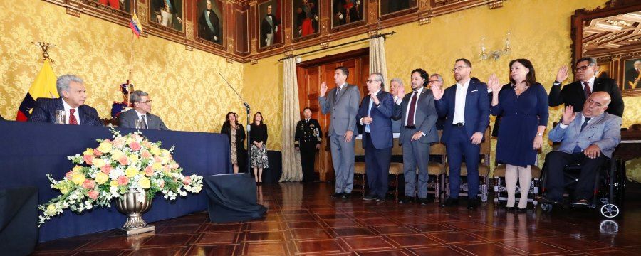 El presidente Lenín Moreno presidió, este miércoles 3 de julio de 2019, la posesión de nuevos ministros y funcionarios de alto nivel del Ejecutivo, muchos de los cuales ya estaban en ejercicio de su cargo. La sesión se realizó en el Palacio de Carondelet.