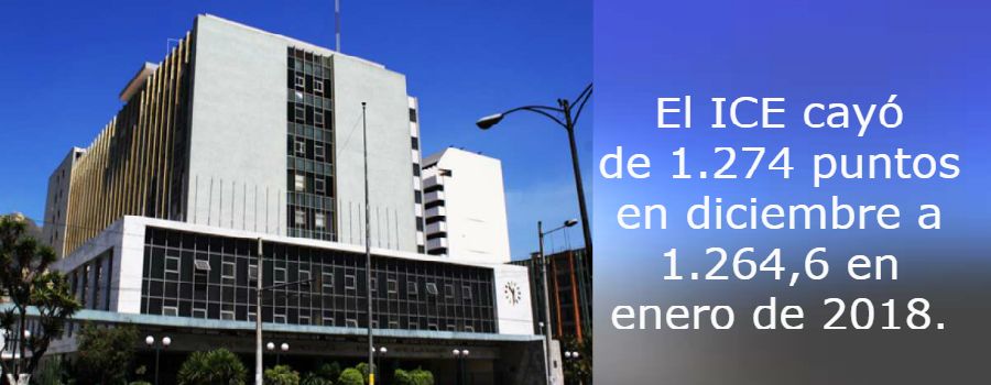 El Índice de Confianza Empresarial (ICE) cayó al pasar de 1.274 puntos en diciembre a 1.264,6 en enero de 2018. La variación responde a la evolución negativa de tres de cuatro sectores examinados (industria, comercio, servicios y construcción). Así lo revela el Estudio Mensual de Opinión Empresarial (EMOE), realizado por el Banco Central del Ecuador (BCE) abarca a 1.000 grandes compañías y que fue publicado el 26 de febrero. El ICE recoge las expectativas de los empresarios, quienes son consultados sobre aspectos relacionados con la variación en ventas, producción, contratación de personal, nivel de inventarios, precios de los insumos y perspectivas del negocio. Fuente: El Telégrafo.