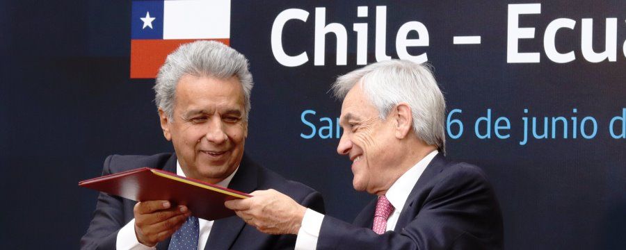 Los presidentes de Chile, Sebastián Piñera, y de Ecuador, Lenín Moreno, acordaron este jueves iniciar negociaciones para Tratado de Libre Comercio (TLC) que regule el comercio y las inversiones bilaterales. Piñera recibió a Moreno en el palacio presidencial de La Moneda, donde ambos encabezaron el V Consejo Interministerial Binacional Chile-Ecuador, cita en la que acordaron “avanzar formalmente en negociar un acuerdo comercial y tener por fin un Tratado de Libre Comercio entre ambos países”, dijo el mandatario chileno en una declaración conjunta. “Esperamos incorporar los acuerdos en materia de evitar la doble tributación, protección de inversiones y tener un cuerpo que regule esta mayor integración y colaboración”, sostuvo Piñera. Fuente: El Universo.