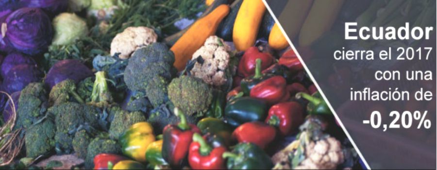 Por primera vez desde 1970, la inflación anual a diciembre alcanzó una resultado negativo, según informó el Instituto Nacional de Estadísticas y Censos (INEC). La cifra fue de -0,20%; mientras que en el último mes del 2016 alcanzó 1,12%. En el caso de la inflación mensual esta fue de 0,18%, es decir, dos centésimas porcentuales más que en el mismo mes del 2016. Las ciudades más inflacionarias a fines del año anterior fueron Santo Domingo, Manta, Ambato, Guayaquil y Quito. Mientras que las menos inflacionarias fueron Esmeraldas, Machala, Loja y Cuenca. Fuente: El Comercio, 5 de enero.