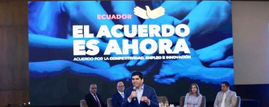 El Acuerdo Nacional por la Competitividad, Empleo e Innovación se presentó ayer. El Ministro de Comercio Exterior, Inversiones y Pesca lidera la mesa, que además tendrá la participación de las otras carteras de Economía, Trabajo, Turismo, Agricultura y Ganadería, Telecomunicaciones, Senescyt y Transporte. El ministro de Comercio Exterior (s), Inversiones y Pesca, Yuri Parreño, señaló que el Acuerdo Nacional en este sector nace como producto de un trabajo basado en un diálogo productivo. Añadió que hay resultados positivos, como por ejemplo el hecho de que los nuevos proyectos del sector automotriz cuenten con 0% de arancel y los actuales tengan una considerable reducción, con el fin de potenciar este sector. Fuente: El Comercio.