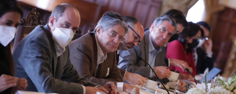 La mañana de este 14 de junio de 2021 se realizó la primera reunión del Gabinete del Frente Económico, encabezado por el presidente de la República, Guillermo Lasso, con el fin de delimitar las medidas para apuntalar la reactivación en el país tras la crisis agravada por la pandemia de COVID-19. “Vamos a afinar la visión de cuáles son los proyectos de inversión que podemos impulsar en áreas como hidrocarburos, electricidad, minería, obras públicas, telecomunicaciones, para reactivar la economía y generar nuevas fuentes de empleo”, dijo el mandatario. Al concluir el encuentro, la ministra de Telecomunicaciones, Viana Maino, señaló que la reunión abordó tres aristas. Primero, potenciar la inversión privada en los cuatro sectores mencionados por el presidente Lasso. Fuente: Expreso.