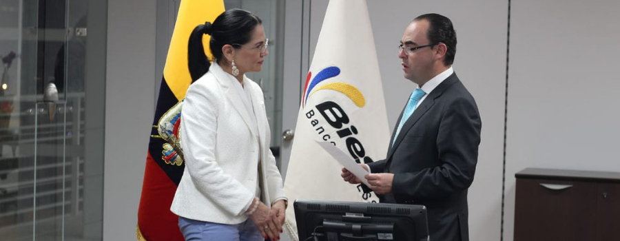 Eva García Fabre asumió este lunes 3 de septiembre del 2018 la Gerencia General del Banco del Instituto Ecuatoriano de Seguridad Social (Biess), en sustitución de Francisco Vizcaino. García es exministra de Industrias y Productividad, cargo que ocupó desde mayo del 2017 hasta el pasado 23 de agosto. Renunció a esa Cartera de Estado, tras el anuncio del Gobierno de que se fusionaría con el Ministerio de Comercio Exterior. La nueva Gerente del Banco de los afiliados es economista, con experiencia en el campo financiero, en el sector público y privado. Anteriormente, Eva García integró la representación del sector empleador y presidió la Comisión Técnica de inversiones del Instituto Ecuatoriano de Seguridad Social (IESS). Entre otros cargos, fue de Intendente Nacional de Banca Pública en la Superintendencia de Bancos. Fuente: El Comercio.