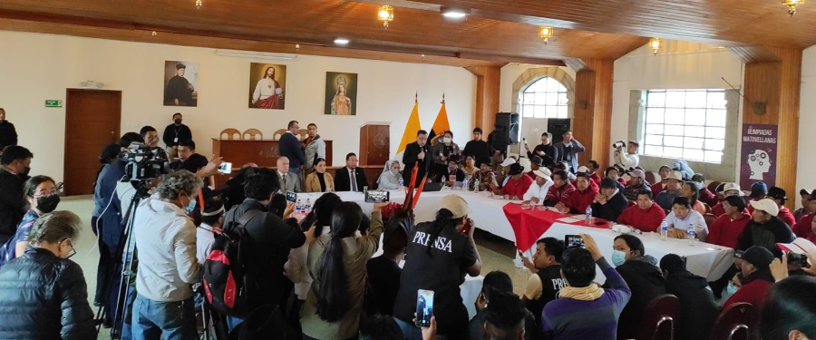 La salida a la crisis que vive el país se abordó en dos escenarios, ayer (27 de junio). Por un lado, los dirigentes de las organizaciones sociales y el Gobierno se lograron sentar frente a frente para dialogar. La segunda instancia sigue siendo la Asamblea, en donde continuaron los acercamientos para alcanzar los 92 votos que se requieren para destituir al presidente Guillermo Lasso. Después de 15 días de manifestaciones, finalmente el Gobierno, la Confederación de Nacionalidades Indígenas del Ecuador (Conaie), la Feine y Fenocín, empezaron a negociar. Sin embargo, una vez puestos los términos, los delegados del Ejecutivo hicieron las consultas respectivas a Carondelet, pero no regresaron. Daba la sensación de que los pedidos de la Conaie eran demasiado altos y no tenían un atisbo de concesiones por su parte.