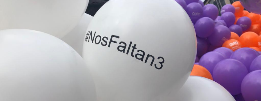 Una pancarta con el dibujo de un corazón roto y los nombres de Paúl Rivas, Javier Ortega y Efraín Segarra encabezó la manifestación. “¡Nos faltan tres! ¡Que vuelvan ya!”, gritaban cerca de 200 personas, mientras recorrían en bicicletas, en patines y a pie los 3 kilómetros que separan la Plaza de los Presidentes, en La Mariscal, de la Cruz del Papa, en el parque La Carolina, en el norte de Quito. Desde las 09:00, familiares, amigos, periodistas y ciudadanos pedían la liberación inmediata del equipo periodístico de este Diario, que fue secuestrado en la frontera norte hace dos semanas. “Seguimos en la lucha. Estamos presionando a las autoridades para lograr su pronto regreso”, dijo Christian Segarra, hijo del conductor plagiado. Fuente: El Comercio.