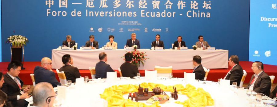 "El presidente de la República, Lenín Moreno, inauguró el Foro de Negocios Ecuador-China (…) En su ruta para ampliar mercados y explorar nuevas inversiones, el mandatario despertó el interés de más de un centenar de empresarios chinos y una veintena de ecuatorianos que acudieron al evento", dice el texto de prensa.