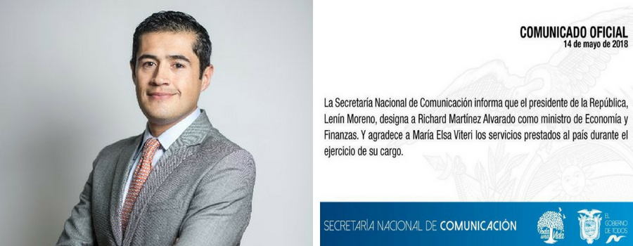 El presidente Lenín Moreno nombró al empresario Richard Martínez como nuevo ministro de Economía y Finanzas en reemplazo de María Elsa Viteri, quien estuvo pocos meses en el cargo.