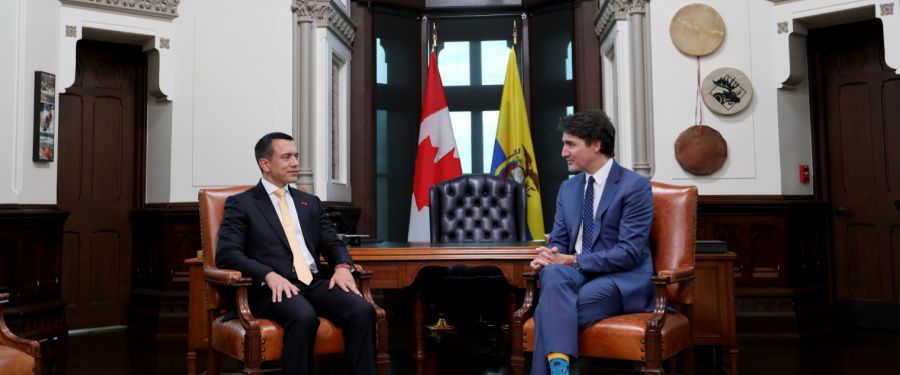 Daniel Noboa y Justin Trudeau, primer ministro canadiense, hablaron de un acuerdo comercial y un crédito soberano