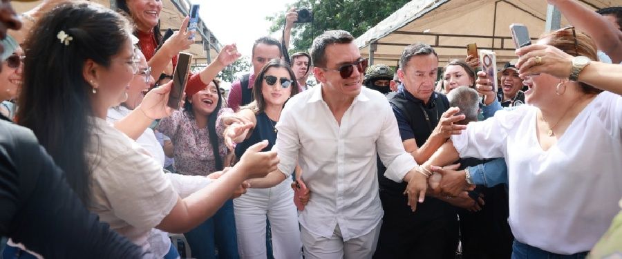 Daniel Noboa llega como presidente en funciones a la campaña electoral pese a los pedidos de tomar licencia