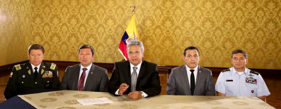 Acompañado de la plana mayor de las Fuerzas Armadas, el presidente de la República, Lenín Moreno, se dirigió a la Nación para expresar su repudio al ataque en el sector de Mataje, Esmeraldas, en el …