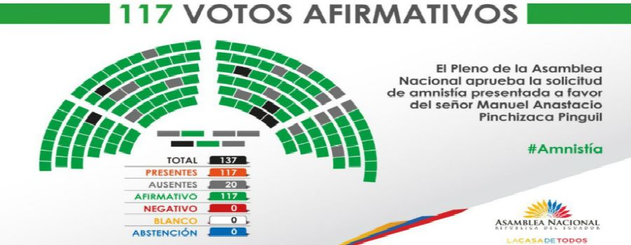El legislativo ecuatoriano concedió este martes la primera de las 207 amnistías solicitadas por la Confederación de Nacionalidades Indígenas (Conaie) en mayo pasado para los miembros de la …