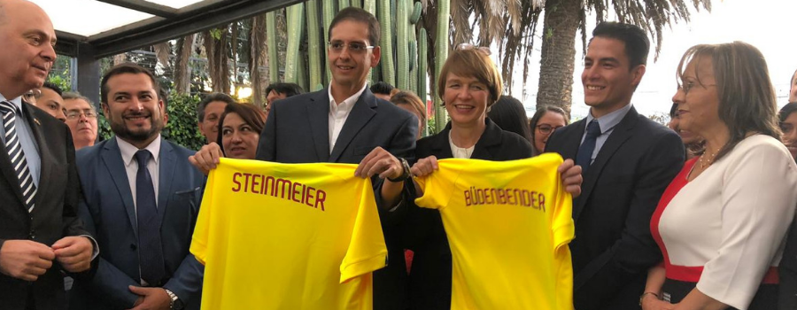 La Primera Dama de Alemania, Elke Büdenbender, recibió la camiseta de la Selección Ecuatoriana de Fútbol de manos de Juan Carlos Corral, Gerente General de Fibrán.