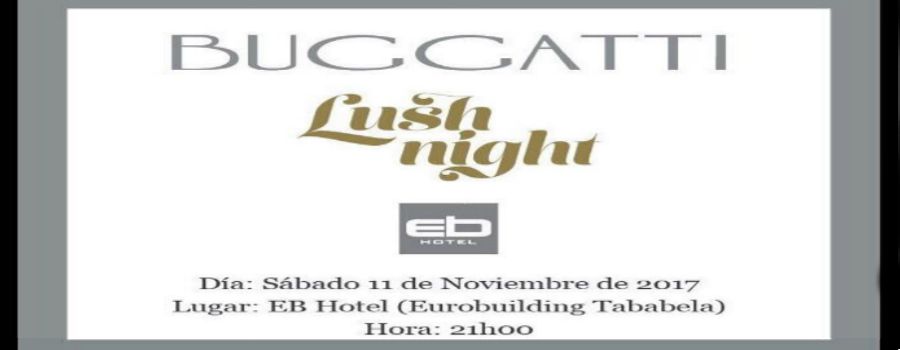 Buggatti realizará su fiesta Lush night, el día sábado 11 de noviembre de 2017, en Eurobuilding Tababela, a las 21:00. El evento cuenta con el respaldo de Produbanco, Ford, Yanbal, UHY, Royal …