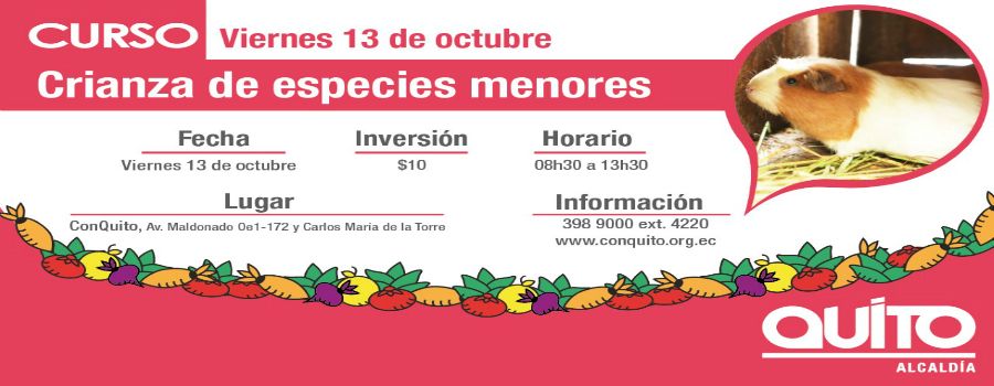 La Agencia de Promoción Económica Conquito mediante el proyecto de Agricultura Urbana Participativa Agrupar invita a participar del curso ‘crianza de especies menores’ que se realizará el viernes 13 …
